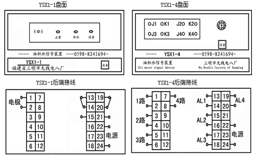 YSXl-1油積水信號裝置由電極裝置和集成發信電路兩部分組成。電極由不銹鋼材料精制,防銹性能,導電性能好,發信電子控制線路主要由集成電路組成,靈敏度高,維護方便。