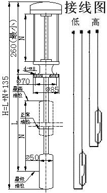 4)、本信號器出廠時(shí)預(yù)置的液位信號位置與實(shí)際不符時(shí),可以改變相應(yīng)的磁控開關(guān)的接線長度來調(diào)整。