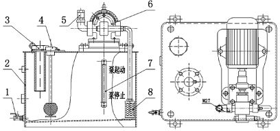 5、出油口 6、齒輪油泵 7、液位計 8、濾油器